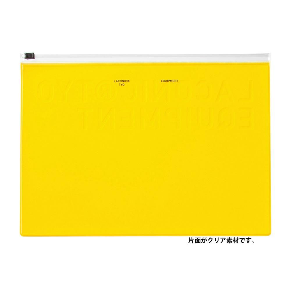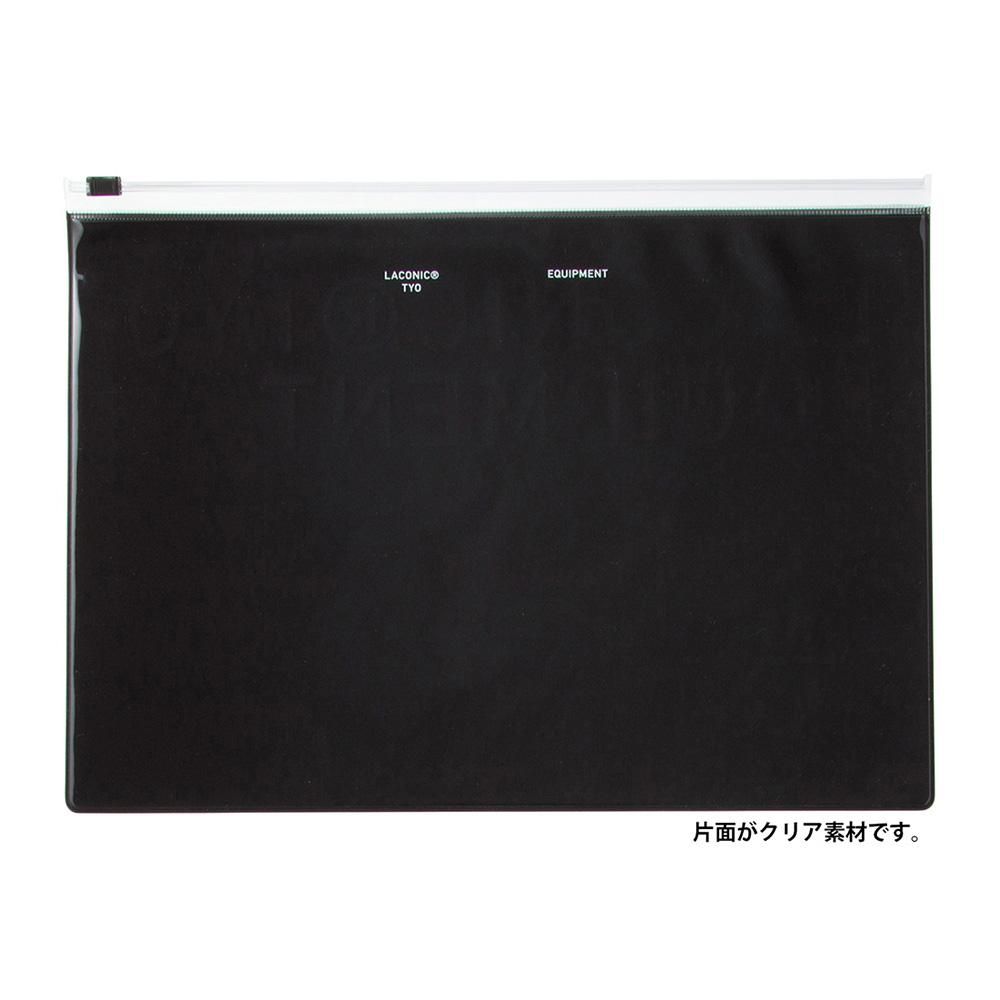 基本的にはポーチと同じで片面がクリア素材となっていますが、ドキュメントケースとしての機能を重視し、中身を確認しながらの開閉がスムーズにいくようクリア素材が表側にくるように設計されています。